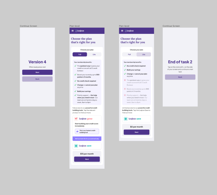 Off of the back of these findings, it felt that if we get the explanation right at the start of the journey our users are happy with the rest of the journey. Due to how the journey is currently set up, the plan page (where we display our product information and how much they cost the user) felt like the area to focus on when coming up with improvements before testing again.
