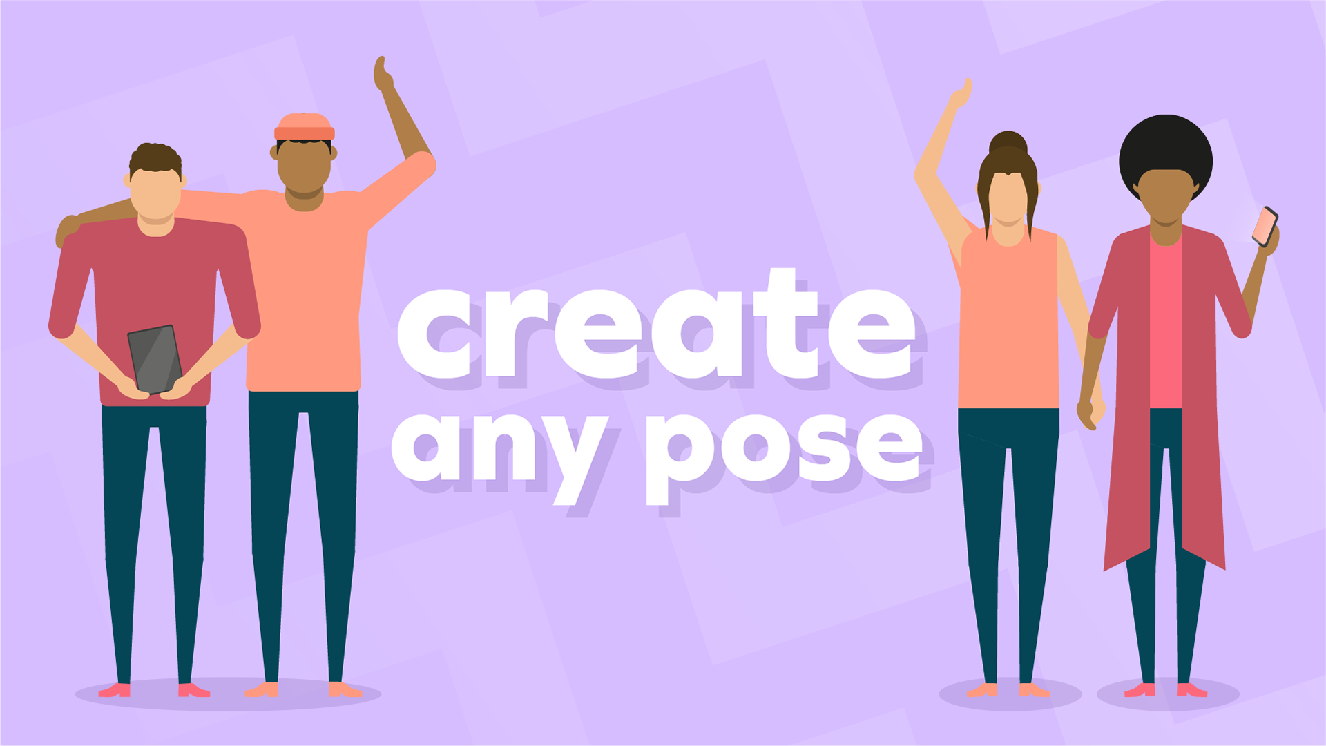 I also wanted to convey the message that people are always at the heart of everything Veygo do. To do so, in all the graphics the Veypals (Name used to describe human characters) are the only things in full colour, this allows them to have clear contrast against their monochromatic surroundings. While creating these Veypals I included "joints" which meant that they could be easily posed in a number of different positions.